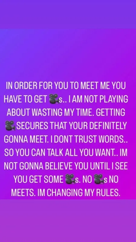 IF YOU WANNA MEET YOU MUST BUY 7 VIDEOS FOR $75 FIRST.